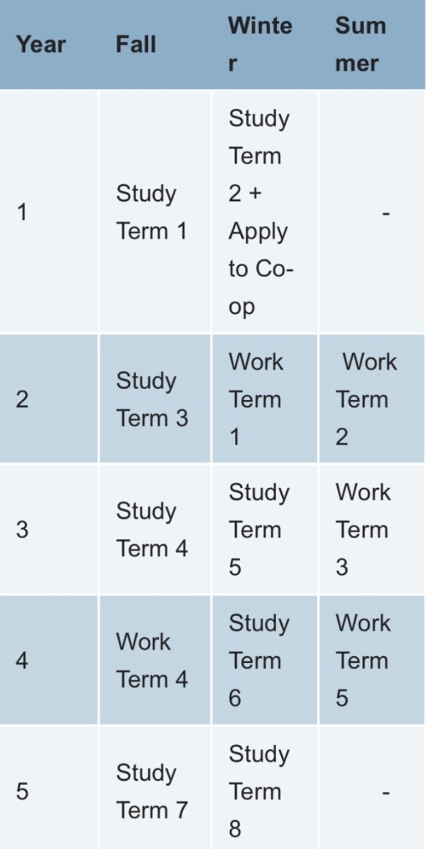 코업학기에는 일정부분 등록비를 학교에 지불합니다. 코업의 장점으로는 1) 경력의 확보 2) 네트워크의 확보 3) 수업료 절약 4) 다음학기에 뭘 전략적으로 공부할지를 배우는 계기등이 있겠네요. 코업은 대부분의 학교에서 가능합니다. 워털루대학같은 경우는 의무적인 프로그램들이 있어서 인기가 높은것이고요. 한학기 수업 – 코업 – 수업 – 코업 이런식으로 5년을 학교에 다니게 됩니다.